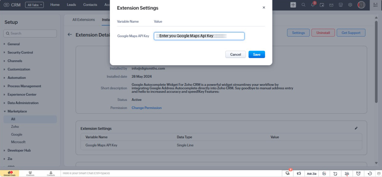 Installation Guide for the Google Address Autocomplete Widget in Zoho CRM